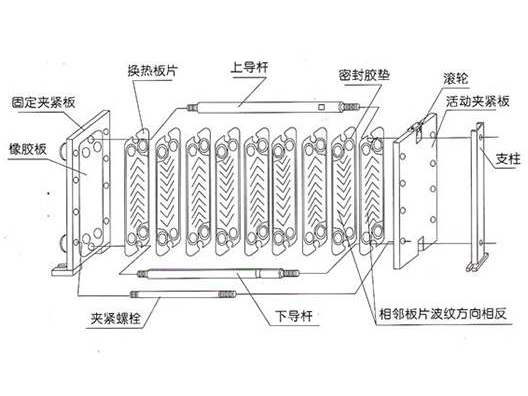 板式換熱器的結構主要包括固定板,活動板,板片組,膠條,上下導桿,螺栓螺母等部分,那么如何才能從這些方面或者部分方面提升換熱效率呢,今天就來說一下。